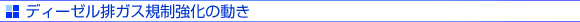 ディーゼルエンジンは燃焼効率が高くCO2(二酸化炭素)の排出量が少ないことから、地球温暖化対策を優先するヨーロッパでは、 環境によい車としてディーゼル車が見直されていますが、その一方でNOx(窒素酸化物)やPM(Particulate Matter=粒子状物質)の排出が問題となっています。